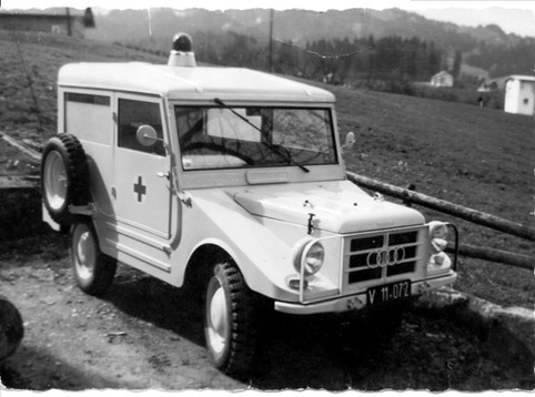 Wie wir aus der Sicht einer RK-Helferin entnehmen können, hat es in den 40er Jahren bereits einen Krankenwagen, aus der Kriegszeit gegeben.